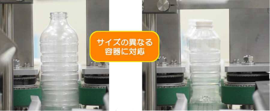 これまで必要だった容器位置決め部品(タイミングスクリュー)が不要となるため、容器の型替え作業が発生しません。これにより、作業時間を大幅に短縮でき、多品種・小ロット生産に強い生産ラインの構築が可能になります。